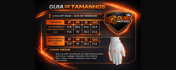 Confira abaixo as medidas de circunferência da mão para escolher o tamanho ideal da sua luva.